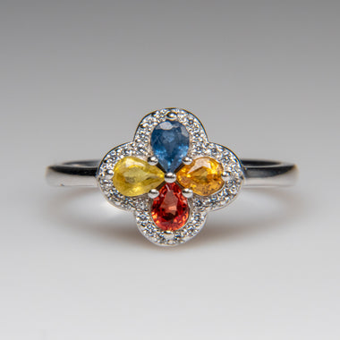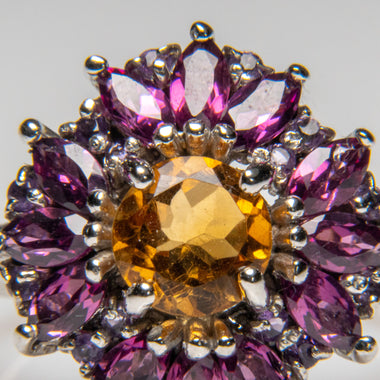 Beautiful high quality 10x15mm multi gemstones in sterling silver Ring adorned with a vibrant mix of amethyst, citrine, peridot, and topaz. The col...
