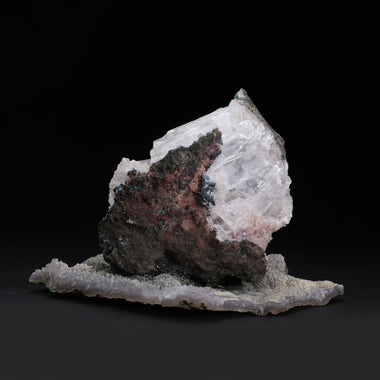 From Rio Grande do Sul, Brazil An aesthetic specimen of a gem transparent gypsum var. selenite crystal on druzy quartz amethyst matrix. The specime...