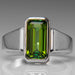 Genuine Green Tourmaline Gemstone Sterling Silver Men's Ring (Size 7)