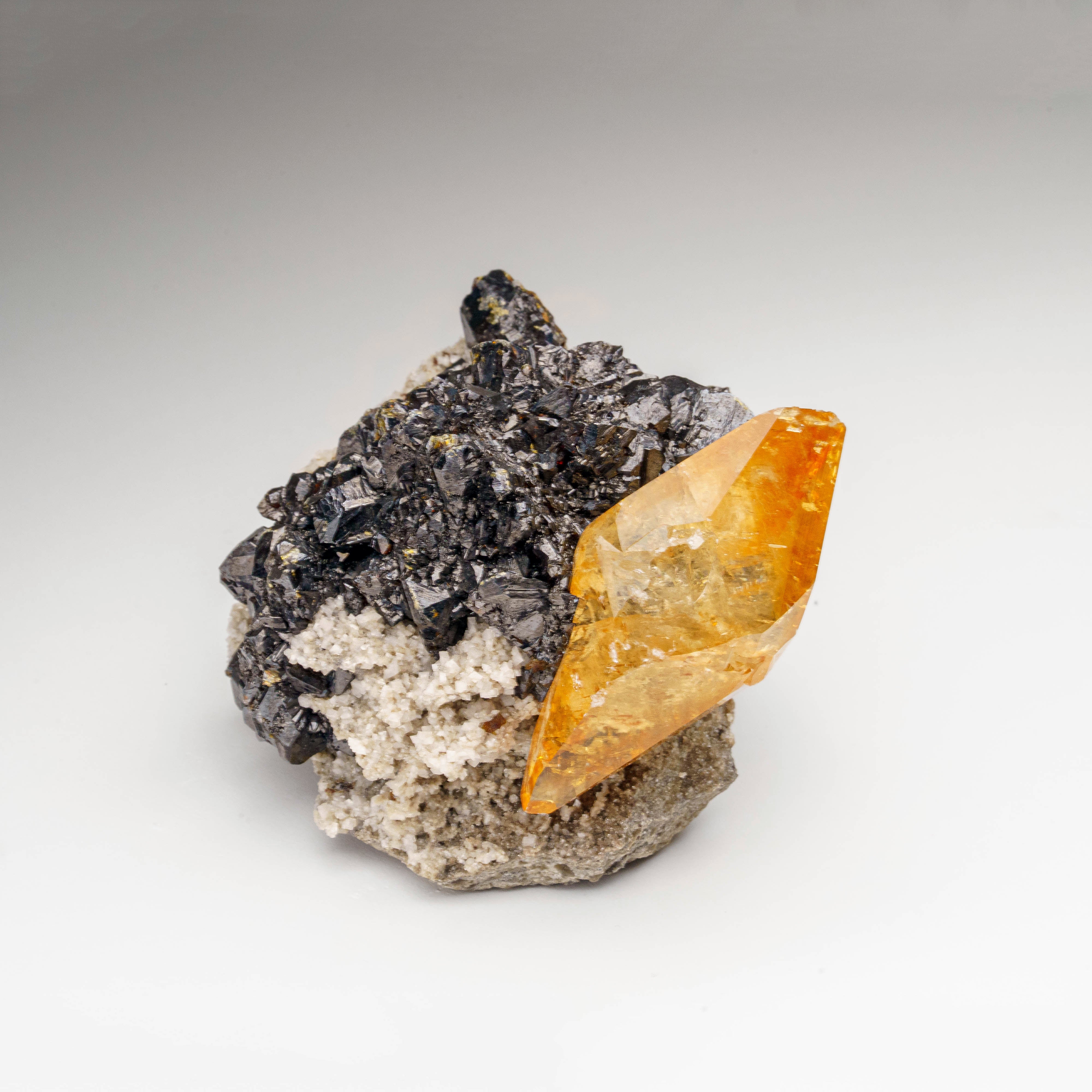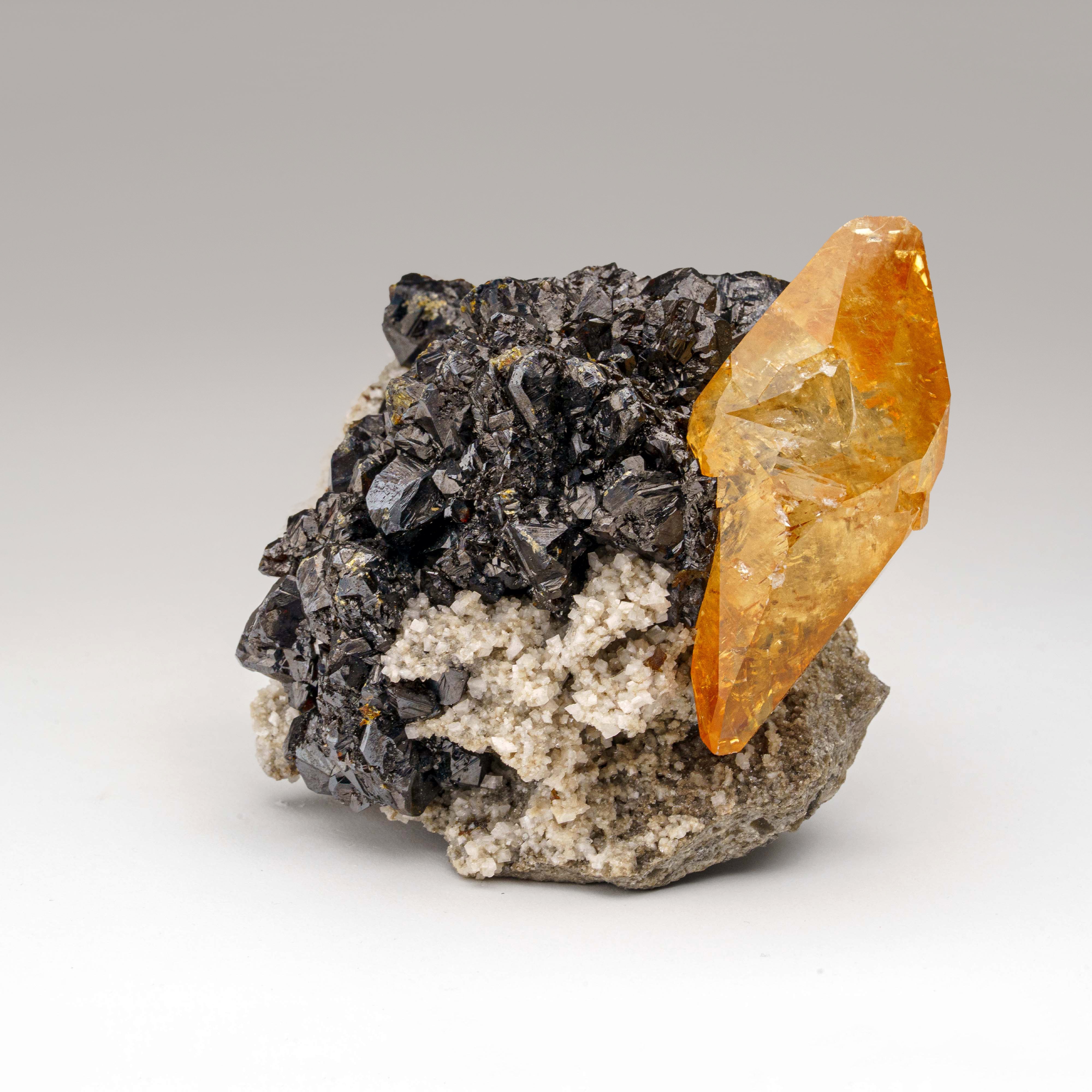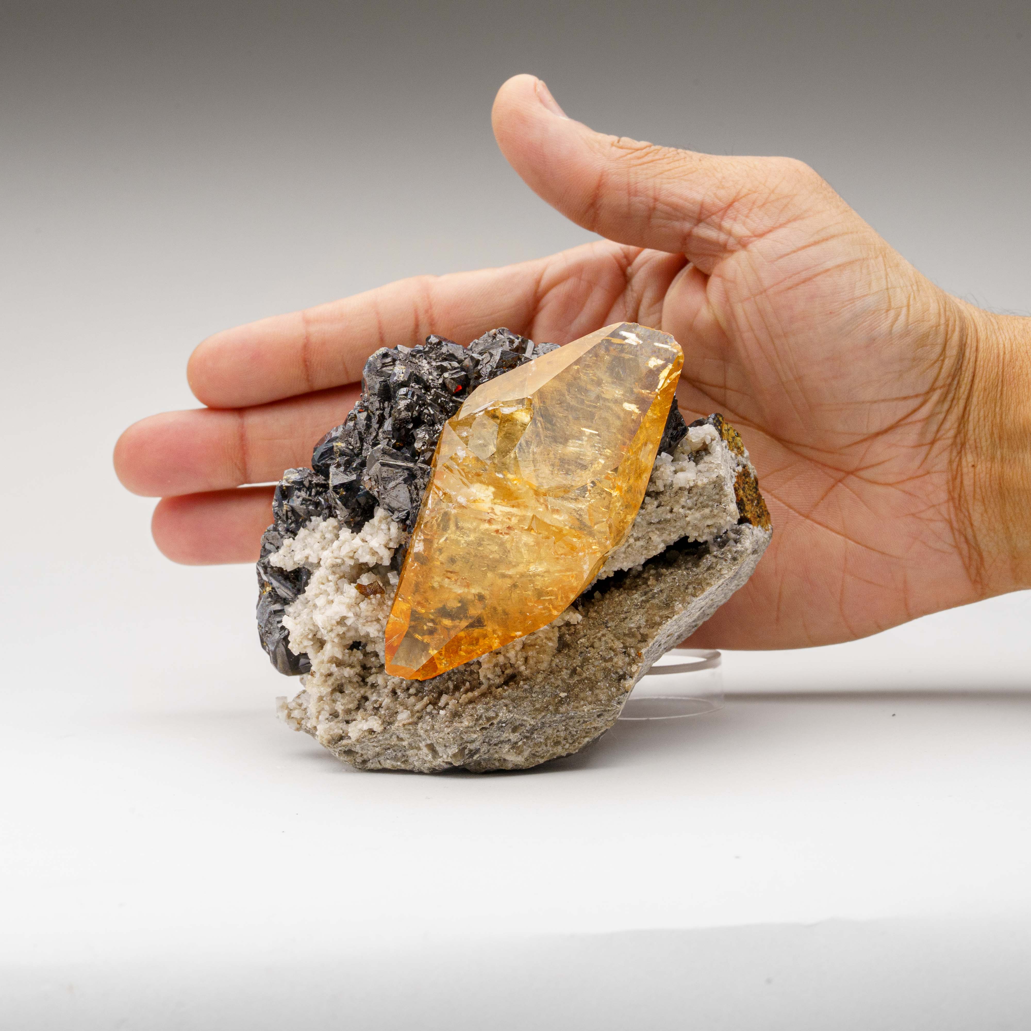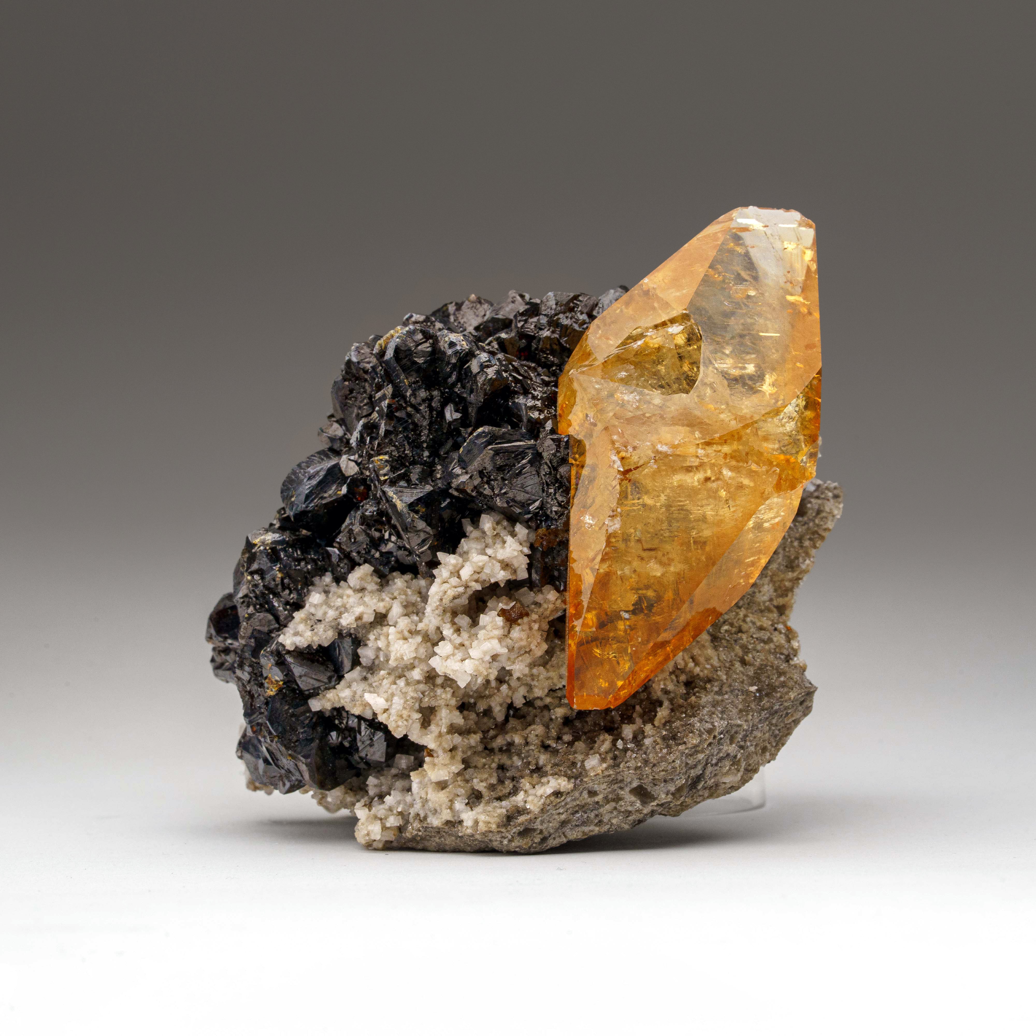 Golden Calcite with Sphalerite Crystal from Elmwood Mine, Tennessee
